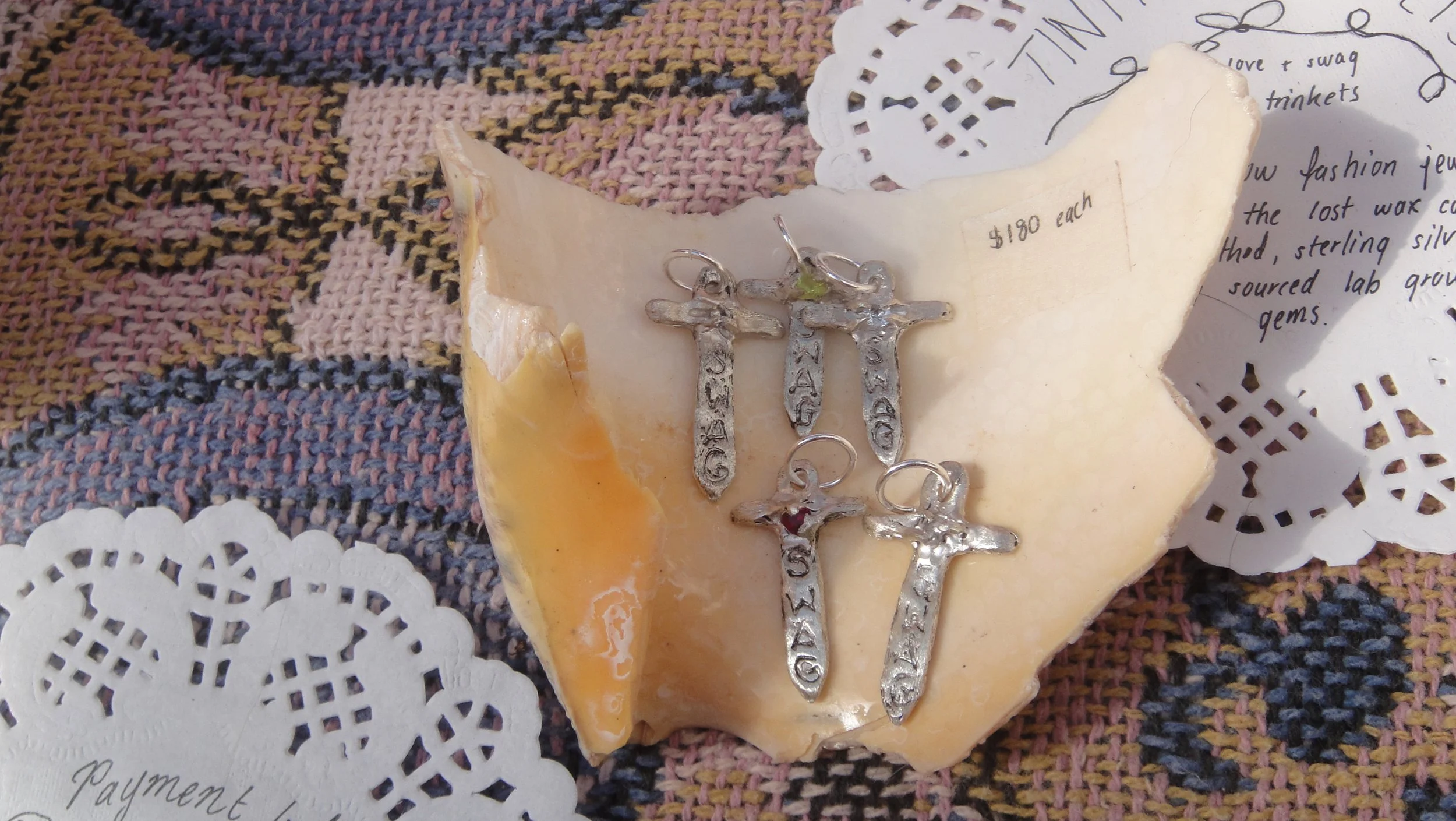 Categories: All Charms Necklaces Rings All | Charms | Necklaces | Rings | Lucky Charms (Large) $100.00 Lucky Charms (Medium) $80.00 Lucky Charms (Small) $50.00 Put a bow on it! Necklace $180.00 Love Hurts Necklace $180.00 Horseshoe Ring $150.00 Chaos Earrings $160.00 Swagger Dagger $180.00 Spider Love Necklace $200.00